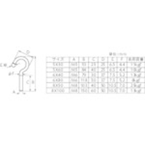 先端が丸形のボルトフックです。サイズの「60」はおおよその首下長さ(mm)です。小物掛けなどに使用。 |