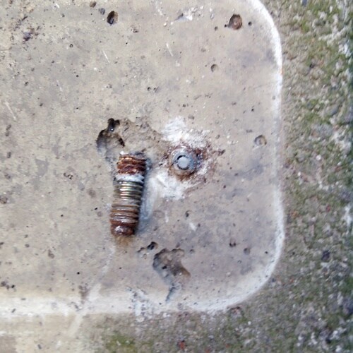 本体持ち手にハンマーヘッド付です。切断後のアンカーボルト突起残を叩いて沈めるハンマーに。 |