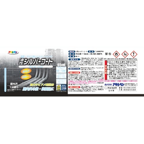 たいへん塗り易く、1回塗りで仕上がります。塩害に強く、強力サビドメ剤を配合していますので、サビの発生を防ぎ、長期間鉄製品を守ります。日光や雨に強く、美しい銀光沢の合成樹脂塗料です。 |