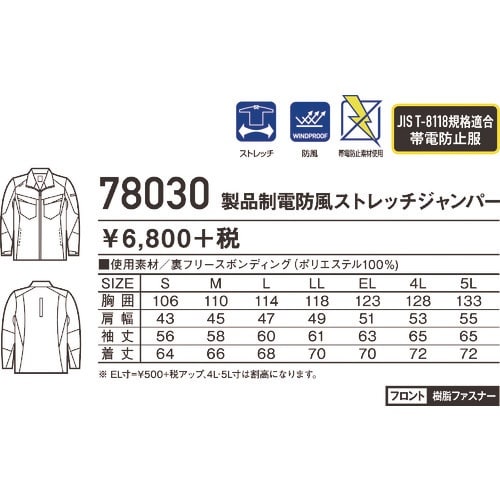 フルハーネス対応で防風機能も兼ね備えた制電防寒ジャンパーです。