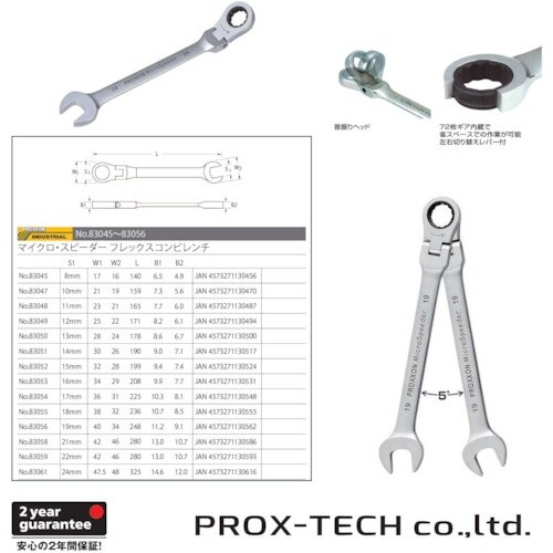 ラチェット部ヘッドの角度が可変できるので、多様な箇所の作業が可能です。レーザーマーキングが素早く直観的な選択を可能にします。ボルトやナットの締め付けに。 |