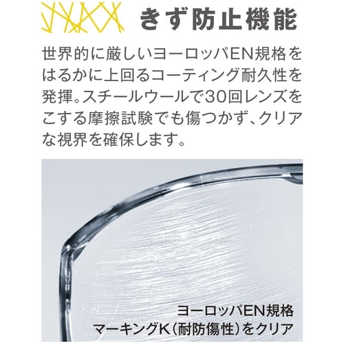 サイドアームにある多数の開口部が空気循環を改善し、軽量でありながら耐衝撃性も損なうことのない保護メガネです。