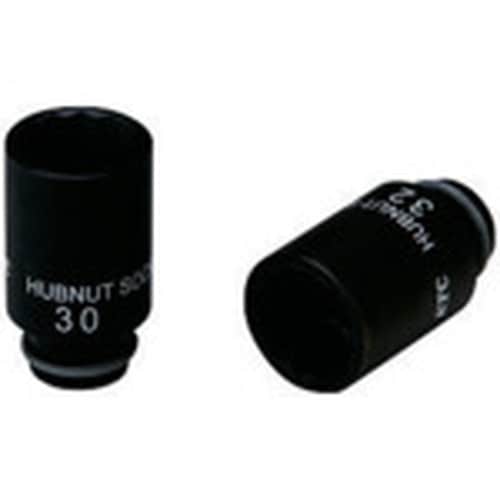 トヨタ車や欧州車に使用されている二重六角形状のフロント(リア)アクスルハブナットやハブボルトのインパクトレンチでの緩め作業用ソケットセットです。ハブに合わせた口径部深さと、外周寸法を採用。 |