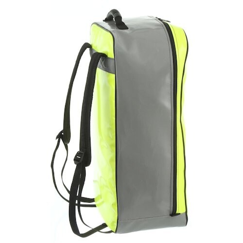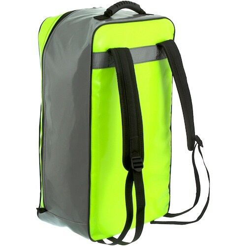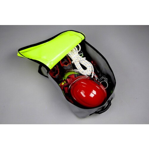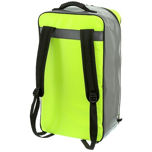 バッグにはPVC素材を使用し優れた防水性があります。ヘルメット、作業着やシューズなどを収納できます。水洗いで汚れを簡単に落とすことができます。本体に蛍光イエローを使用しており視認性が高いです。 |