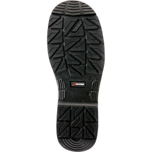 靴の取り替え時期をスリップサインでお知らせします。先芯は国際基準(ISO)200Jの樹脂先芯です。耐油底で耐滑性に優れています。屋外作業に。倉庫作業、物流作業などに。
