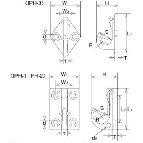フック部には、外れ止め付です。壁面に設置し、物掛けや、チェーン・ロープの端末金具として。 |