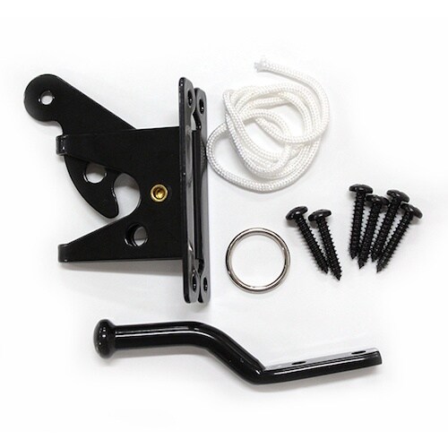扉が閉まるとロックされます。付属の紐を取り付けることで、外側から解錠することができます。木製扉の簡易戸締りに。 |