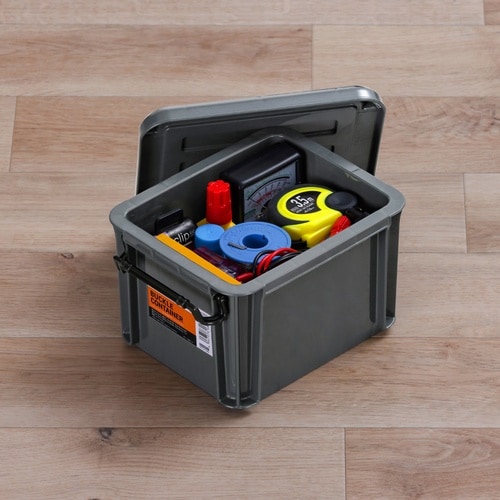 プラスチックバックル仕様のフタ付きコンテナです。バックルの成形部分に凸面が付いているため指に引っかかりやすく、バックルをフタから取り外しやすくなっています。収納に。 |