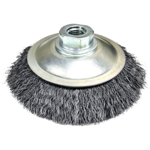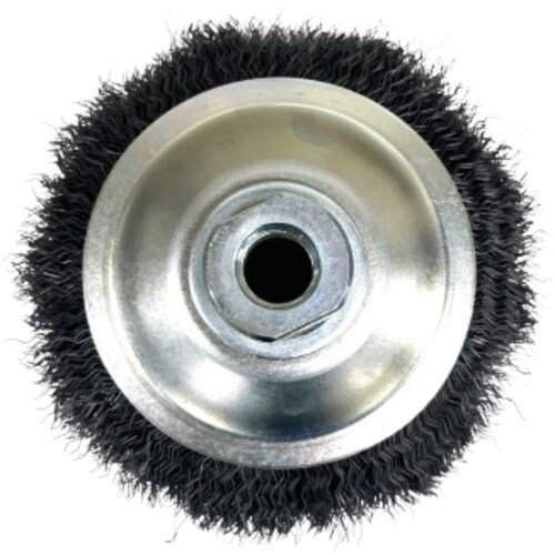 カップ型同様に使用されますが作業箇所や対象ワーク形状によってはベベル型が有効な場合に使用します。高いバランス基準で製品化しておりますので、腕への振動も少なく高速回転作業に適しております。 |