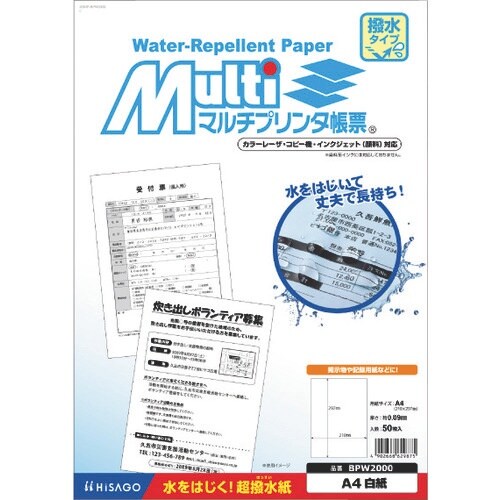 上質紙に撥水加工を施した、水に強くて丈夫な用紙です。水滴がついても、はじいてしわになりにくくなっております。期間限定のお知らせなどの掲示物に便利です。油性ペンや、鉛筆で手書きも可能です。 |