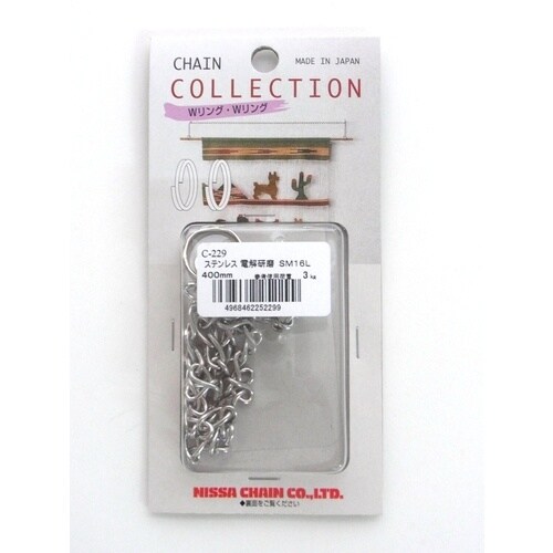 | 注意事項 | ※急激に荷重をかける、角度をつけて吊るなど、適正荷重は使用条件によって変わります。荷重をかけすぎないでください。チェインから外れないようにフック部を閉じる場合がありますが、フック部を再度開けたり、何度も変形を加えると強度が低下します。 |