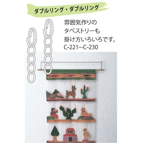 両端に二重リングが付いています。物の吊り下げ、引っ掛けなど。 |