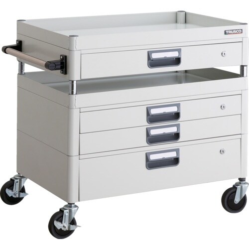 TRUSCO ツールワゴン フェニックスワゴン 抗菌 省音 750X500XH740 引出付 ホワイト