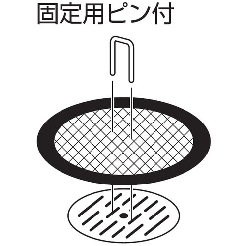 付属の流れ止めピンでずれを防止します。排水用目皿の上に乗せて使用し髪・ゴミをキャッチします。 |