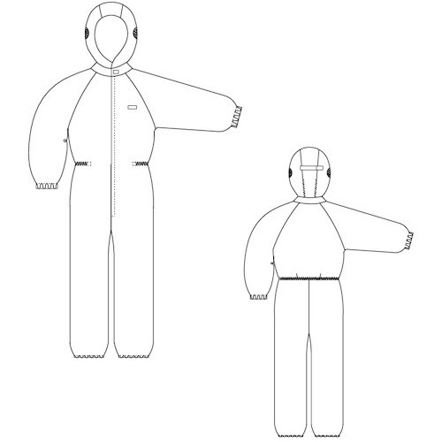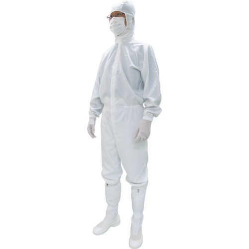 シンプルな平織り構造の通気性に優れる[[R4]]を採用しています。フードとワンピースの一体化によって防じん性を確保しています。 |