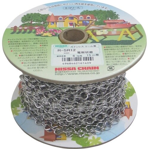 接合部を2重にし、強度の向上と外観を美しく仕上げたチェーンです。リールに巻いている製品のため、使用時に絡まりにくいです。水回りに最適なステンレス製です。 |