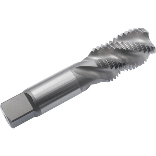 溝がねじれているので小さいカール状の連続した切りくずを後方に排出し、切りくず詰まりを起こしませんので止り穴加工に最適です。切れ味が良いため、特に粘い被加工材やプラスチック等のねじ立てに最適です。 |