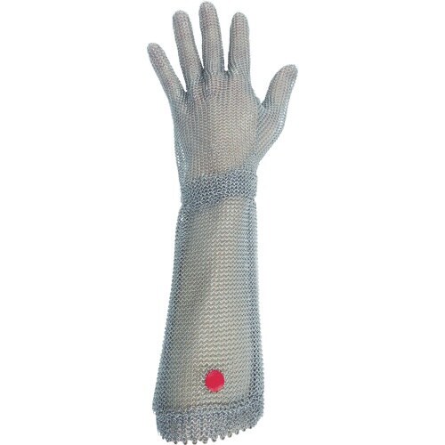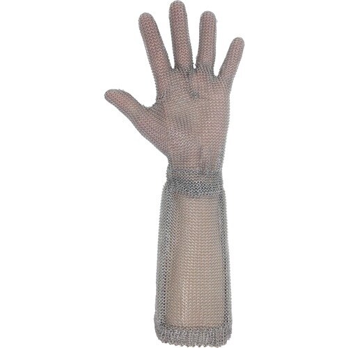 袖口も保護できるロングタイプです。抜群の耐切創強度があります。金属探知機反応タイプのステンレス製です。ステンレススプリングのリストバンドにより、衛生的でかつ抜群の耐久性があります。 |