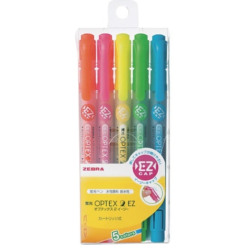 キャップの両サイドをつまむだけで、簡単に開けることができます。1本で太・細書き両用です。乾けば水に流れず、耐光性に優れています。鮮やかな蛍光色が長く持続します。 |