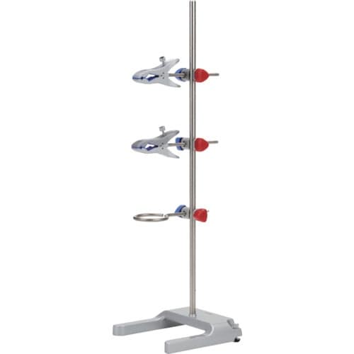 支柱取り付けクランプ部に落下防止機構付きです。つまみを締め忘れた場合でも急落下を防ぎ、安心です。安定感のある大型支柱タイプです。実験器具の保持に。 |