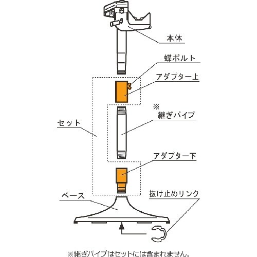 | 注意事項 | ※継ぎパイプはセットに含まれません。必要な高さに応じた50Aのパイプをご用意ください。 |