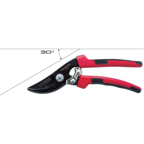 硬さの異なる材質のエルゴノミクスハンドルにより疲労を軽減します。刃部背側のノッチ部分で2mm程度の鉄線の切断も可能です。植物の剪定作業や採果作業に。 |