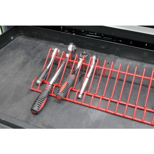 プライヤーを立てて収納するホルダーです。立てて収納するので、引き出しなどのスペースを、有効活用できます。収納する際、グリップを手前にすることで、見やすく、取り出しやすい収納が可能です。 |