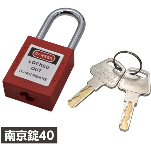 工具箱や扉、荷物の防犯などに使用する南京錠です。ボディーは赤の樹脂製で視認性が高く、施錠のアピールにも効果的です。また、金属製のように熱さや冷たさも感じにくく、対象物にも傷をつけにくくなっています。 |