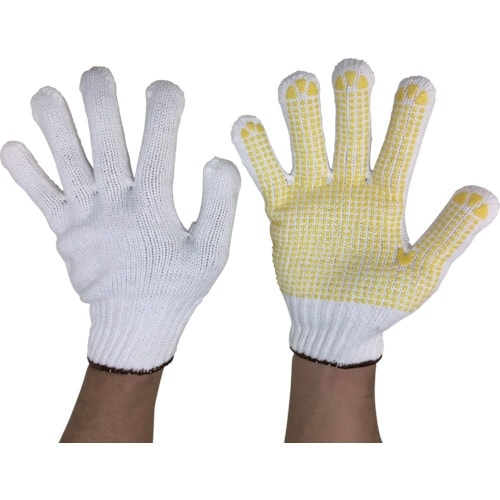 塩化ビニル樹脂による高いグリップ力。ポリエステル繊維なので汚れを落としやすい。軍手の厚みがあり、優れた保護性と耐久性。一般作業、運搬作業、土木建築 等。 |