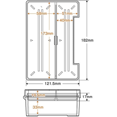 タフケース(ATC−RK)専用トレーです。テーパーの角部で薄いワッシャーなどの小物がすくいやすいです。タフケースの上蓋にフィット、トレーの置き場に困りません。工具の整頓に。 |