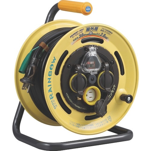 屋外用コードリール2P/2P接地付兼用防雨型コンセント装備です。防雨型2P/2P接地付プラグのどちらにもすきまなくピッタリはまります。 |