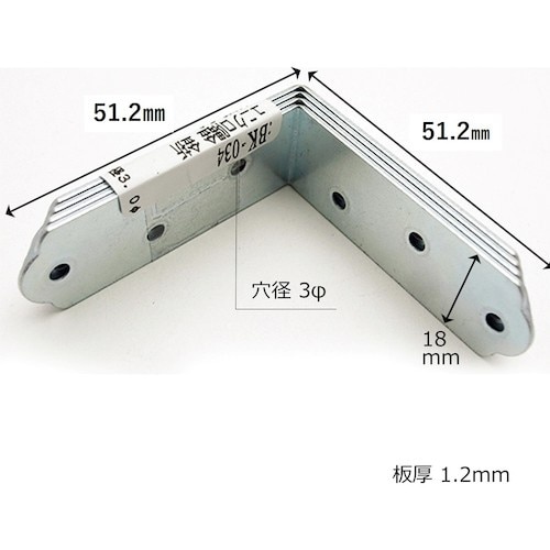 板厚(mm):1.2 | 穴径(mm):3 | 穴数(個):6 | 色:ユニクロ | W(mm):18 | L1(mm):51.2 | L2(mm):…