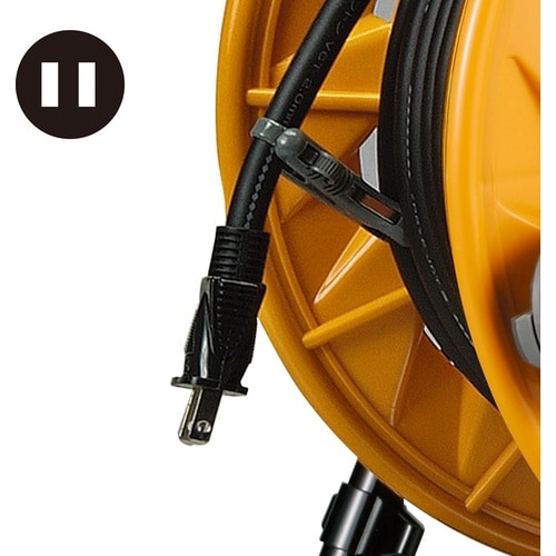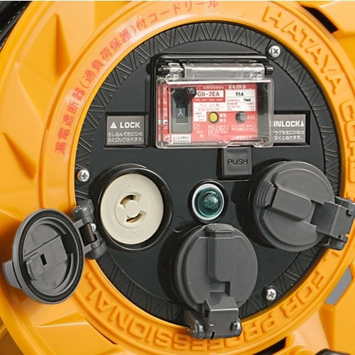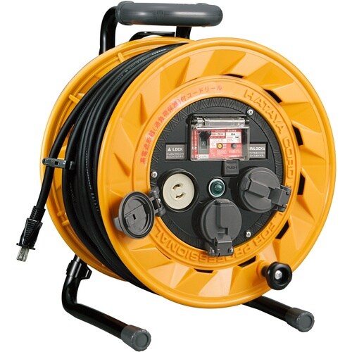 安全作業の必需品、漏電遮断器付きタイプのコードリールです。漏電や感電事故を未然に防止します。コンセント防塵キャップ付です。ブレーキストッパー付きです。温度センサー付です。各種100V機器の電源として。 |