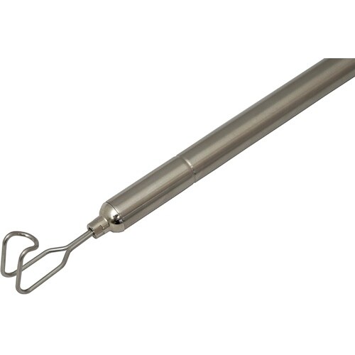 伸ばした時の「たわみ」が少なく、作業効率が上がります。フックはケーブルを掴みやすい形状になってます。落下防止コード用リングが付いてます。丈夫でサビに強いステンレス製です。 |
