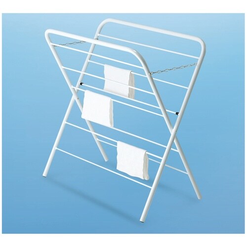 開いて立てるだけのシンプルな雑巾掛けです。使わない時はスリムにたためて収納場所を取りません。タオルや雑巾を掛ける小物干し。 |