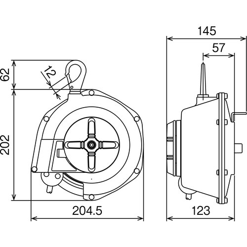 エアーリールとバランサーの一体型です。エアー工具を軽く上げ下げ出来ます。吊り荷重に応じてのトルク調整が簡単です。エアーの作業ラインを整頓させて、効率アップです。 |
