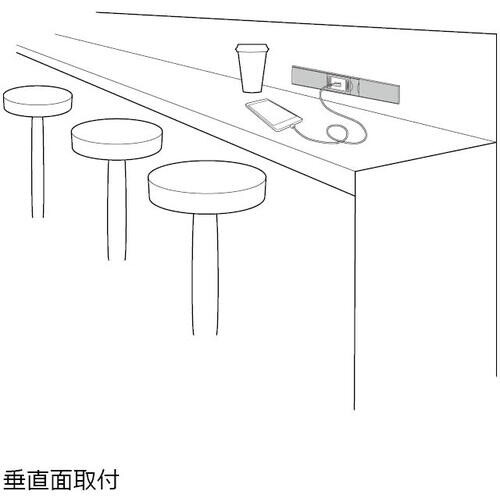 使用例のように、水平面と垂直面に取り付けできます。厚みわずか7mmと薄型のため、フラットですっきりとしたデザインです。ほこりよけの自閉カバー付きです。