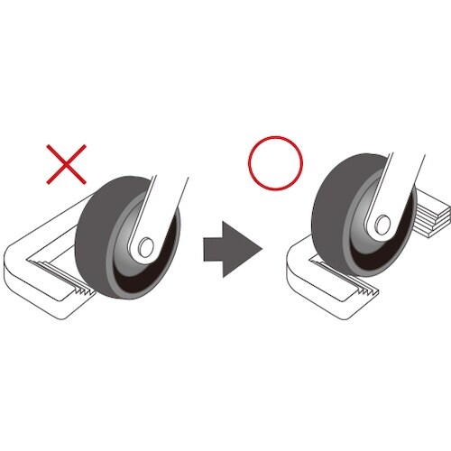 裏面の滑り止めウレタンゴムがキャスターのズレや動きを止めます。あらゆるキャスターに対応できるサイズバリエーションがあります。 |