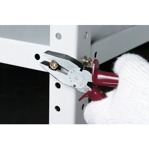 JIS規格タイプと同機能で薄型軽量です。安全なツバ付塩ビ成型ハンドルです。硬い支線や釘も切断できるサイドカッティング機能付です。 |