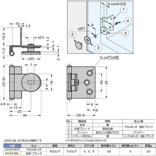 スガツネ工業 SUGATSUNE (170083528)GH34−8CRガラス蝶番 A00E-8933