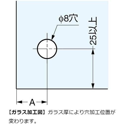 ※ガラスサイズは耐荷重を優先して決めてください。ねじ取り付け時には、ねじ緩み防止剤を併用してください。ブラックは傷が目立ちやすいため、取り扱いにご注意ください。耐荷重は蝶番2ヶ使いの場合の値です。