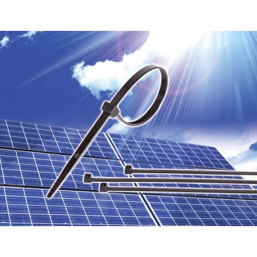 耐候・耐薬品性に優れた結束バンドです。太陽光パネル施工の結束に。