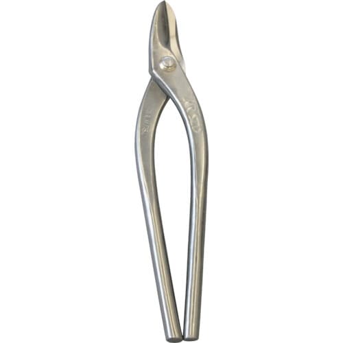 砂鉄系ハガネ日立安来SLD鋼を刃に使用しています。表面はクロニッケルメッキ仕上げです。本職用板金鋏になります。