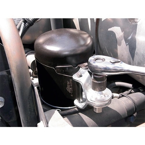 幅広バンドでエアードライヤーフィルターを潰さずに緩め・締め付けができます。いすゞ、UDのエアードライヤーフィルターの脱着に。 |