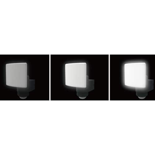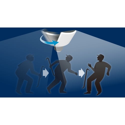センサー探知方向に自動でライトが動くセンサーライトです。人の動きに合わせて光が自動追尾するので、高い利便性・防犯効果を実現しました。ライトの向きは正面を基準として探知した方向に左右60°可動します。 |