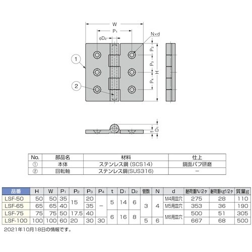研磨仕上げのオールステンレス鋼製の平型丁番です。各種産業機器に。 |