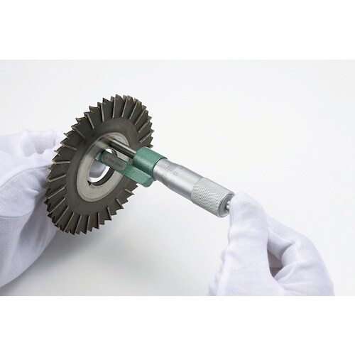 狭い箇所の測定に適しています。精度保証のため、検査時の数値を記した検査表付です。測定面は超硬チップ付です。定圧装置付です。フレームは塗装仕上です。基準棒1本付です。歯車のハブ径測定に。 |