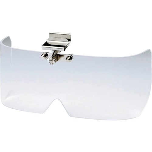 レンズは上に跳ね上げが可能です。ヘルメットのひさしに差し込んで使用します。飛来・飛沫からの保護に。 |