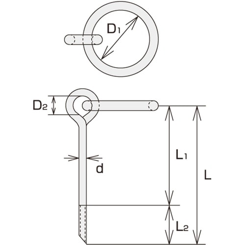 使用荷重(kN):14.7 | L(mm):340 | L1(mm):210 | L2(mm):130 | 呼び径d(mm):19 | リング内径D1…