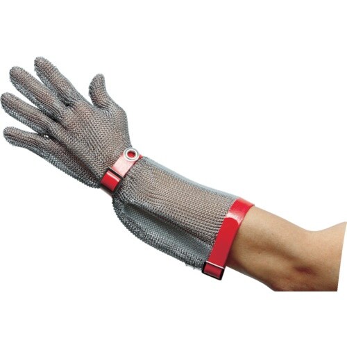 抜群の耐切創強度があります。金属探知機反応のステンレス製です。左右兼用のリーズナブルタイプです。食肉、魚の加工など刃物を扱うハードな作業。 |
